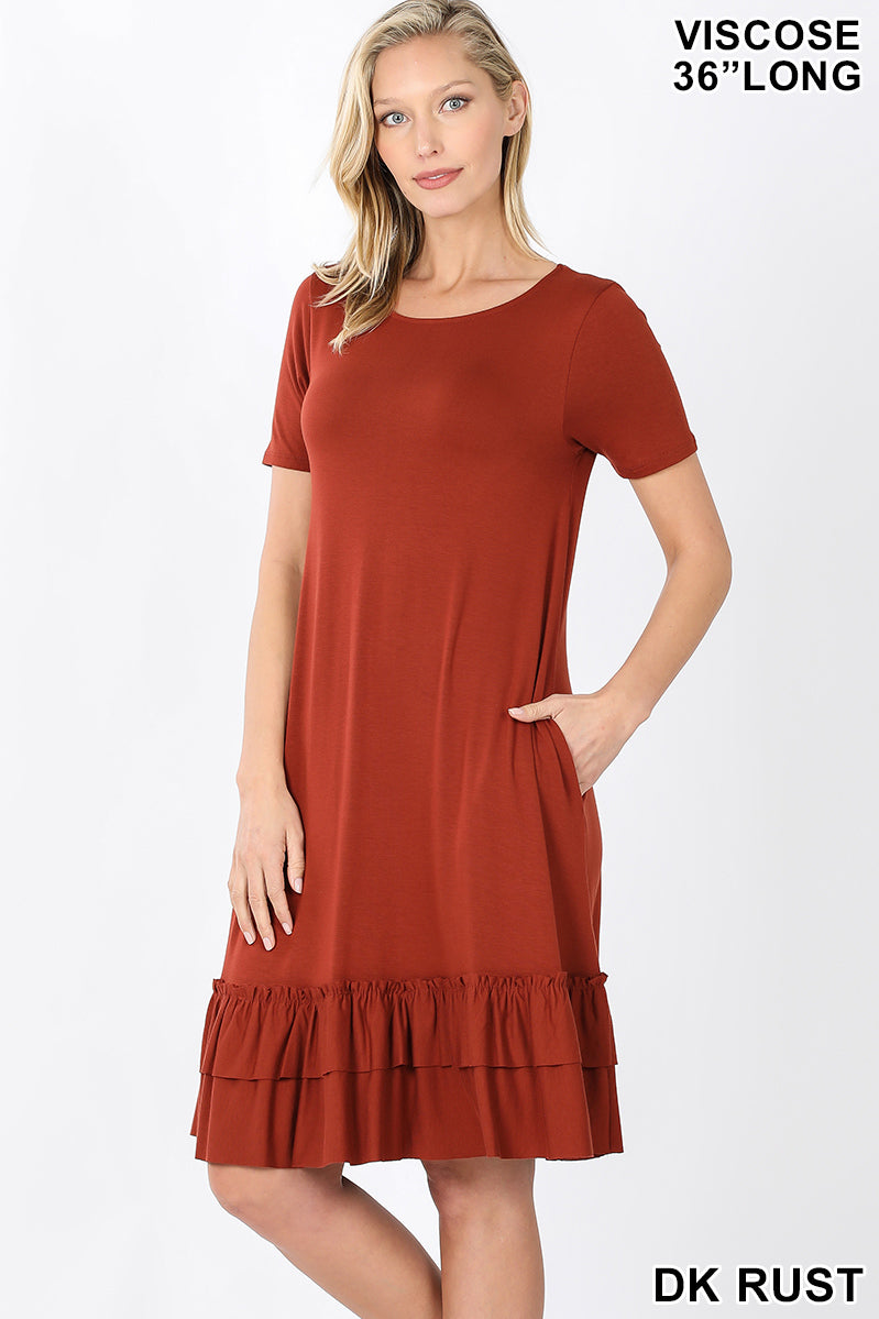 Basic Ruffled Dress in Dark Rust - $15.00