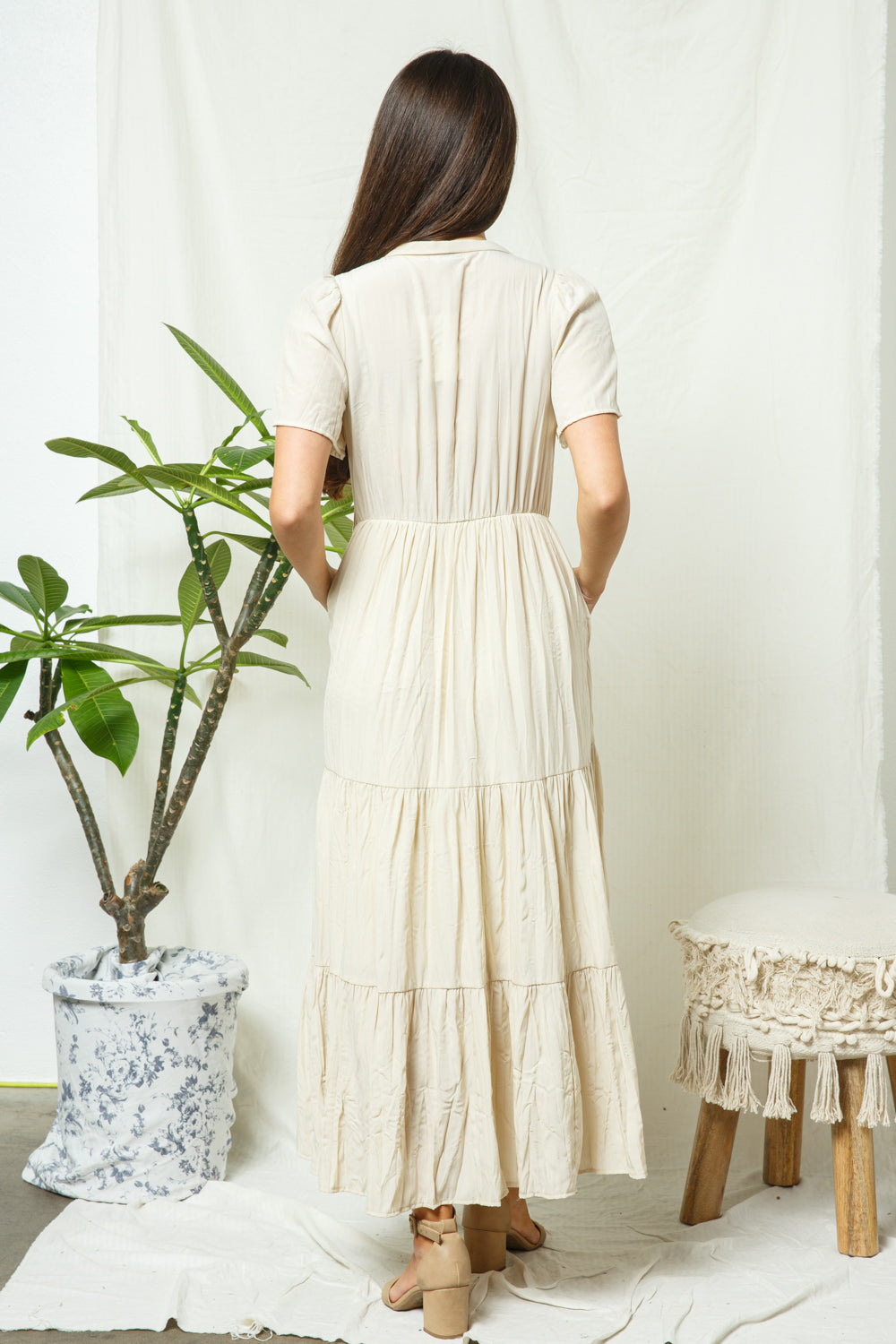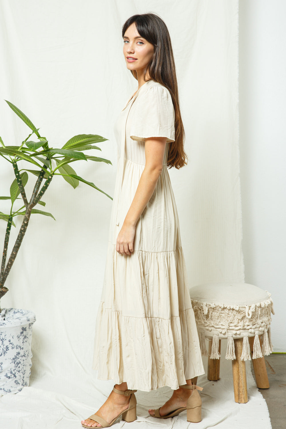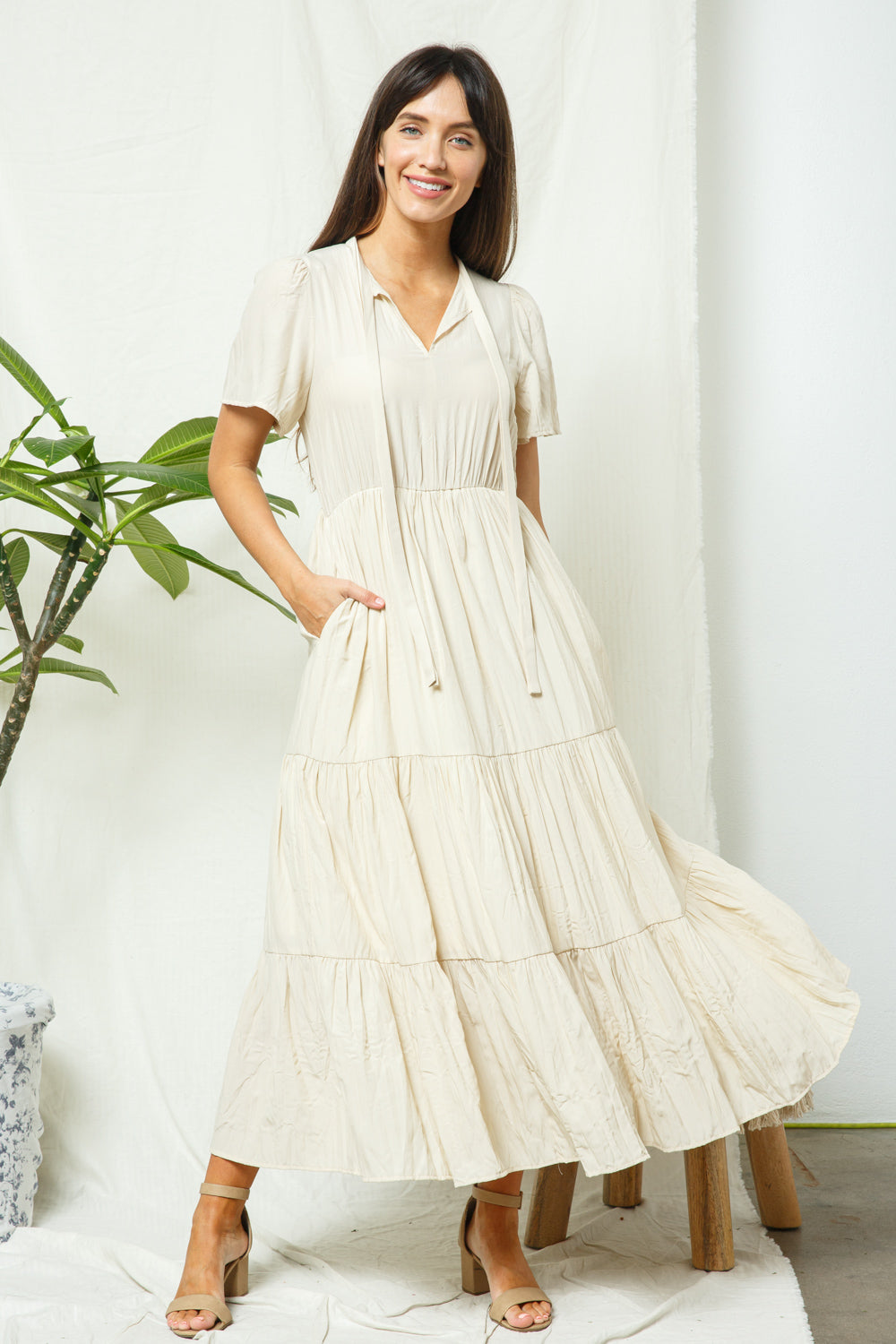 Clothing Chloe Pleated Short Sleeve Dress in Cream Details Clothing Chloe Pleated Short Sleeve Dress in Cream Unavailable $52.00 SMALL - $52.00 MEDIUM - $52.00 Size SMALL MEDIUM Select options This item is a recurring or deferred purchase. By continuing, I agree to the cancellation policy and authorize you to charge my payment method at the prices, frequency and dates listed on this page until my order is fulfilled or I cancel, if permitted. + TIERED MAXI DRESS + SHORT SLEEVE + POCKETS + NECK TIE DETAIL MODEL IS 5'8" (32-24-34) WEARING A SMALL Read more + TIERED MAXI DRESS + SHORT SLEEVE + POCKETS + NECK TIE DETAIL MODEL IS 5'8" (32-24-34) WEARING A SMALL Share