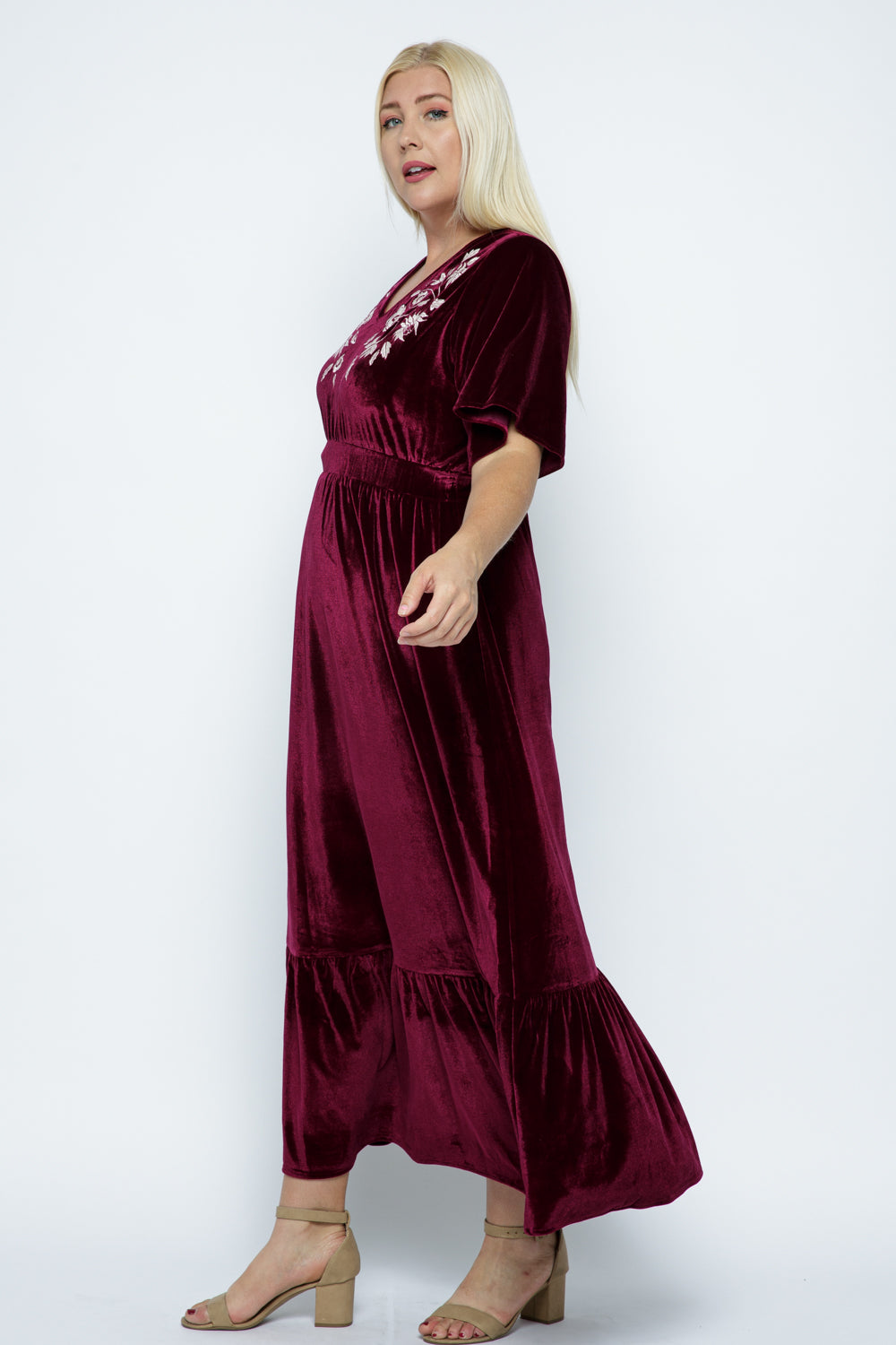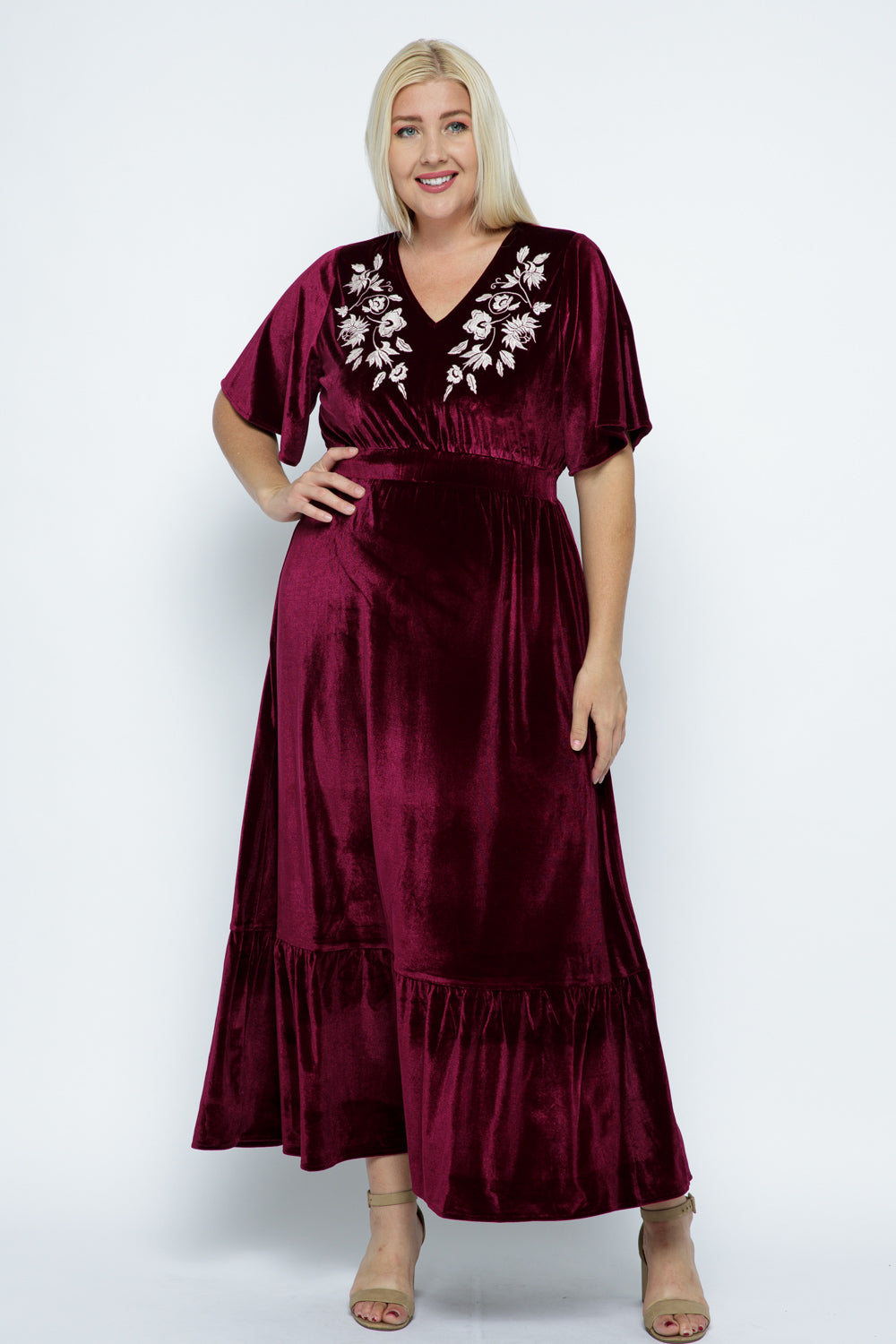 Jasmine Velvet Dress in Burgundy (1X-LARGE)