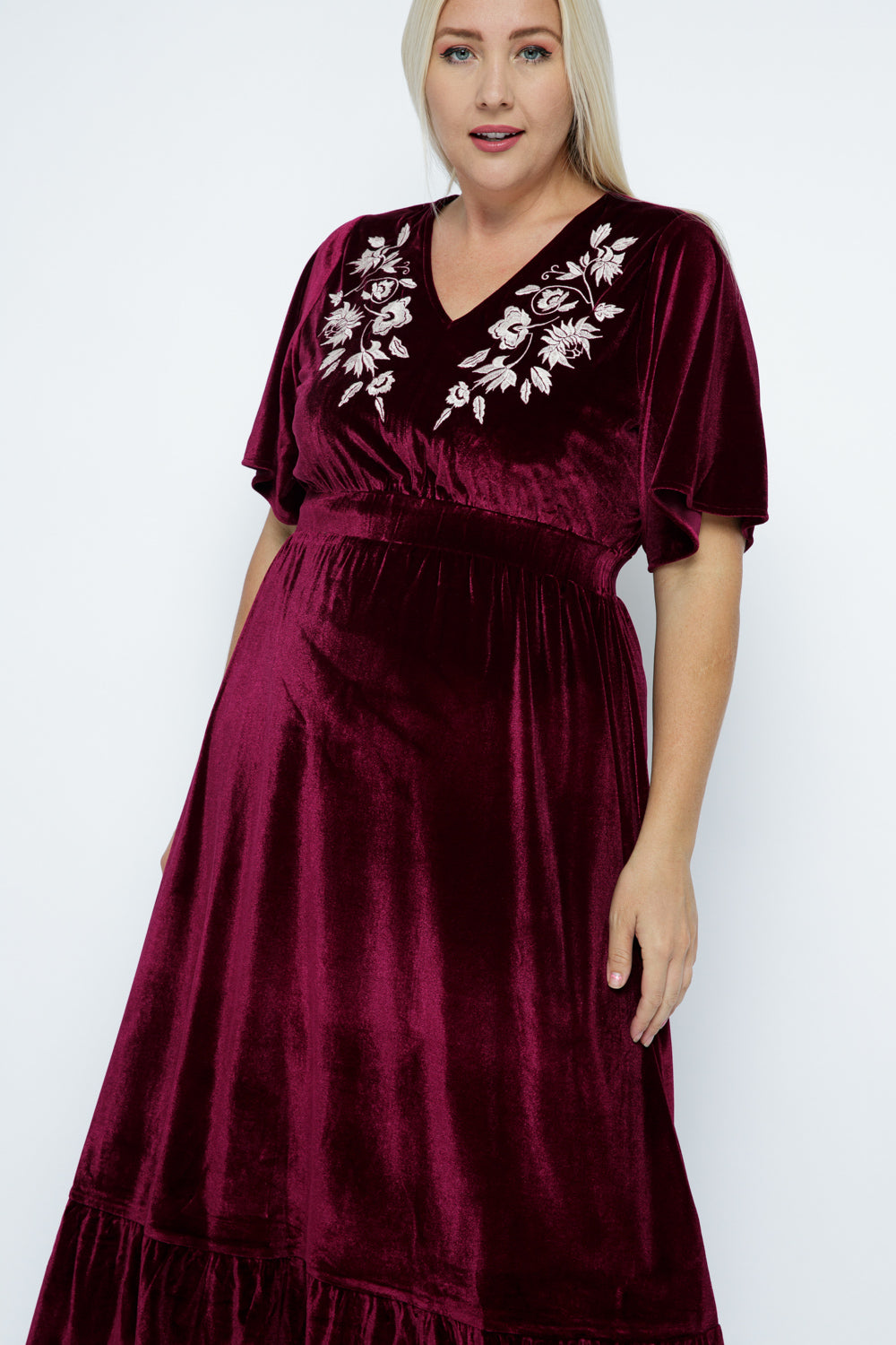 Jasmine Velvet Dress in Burgundy (1X-LARGE) - $49.00
