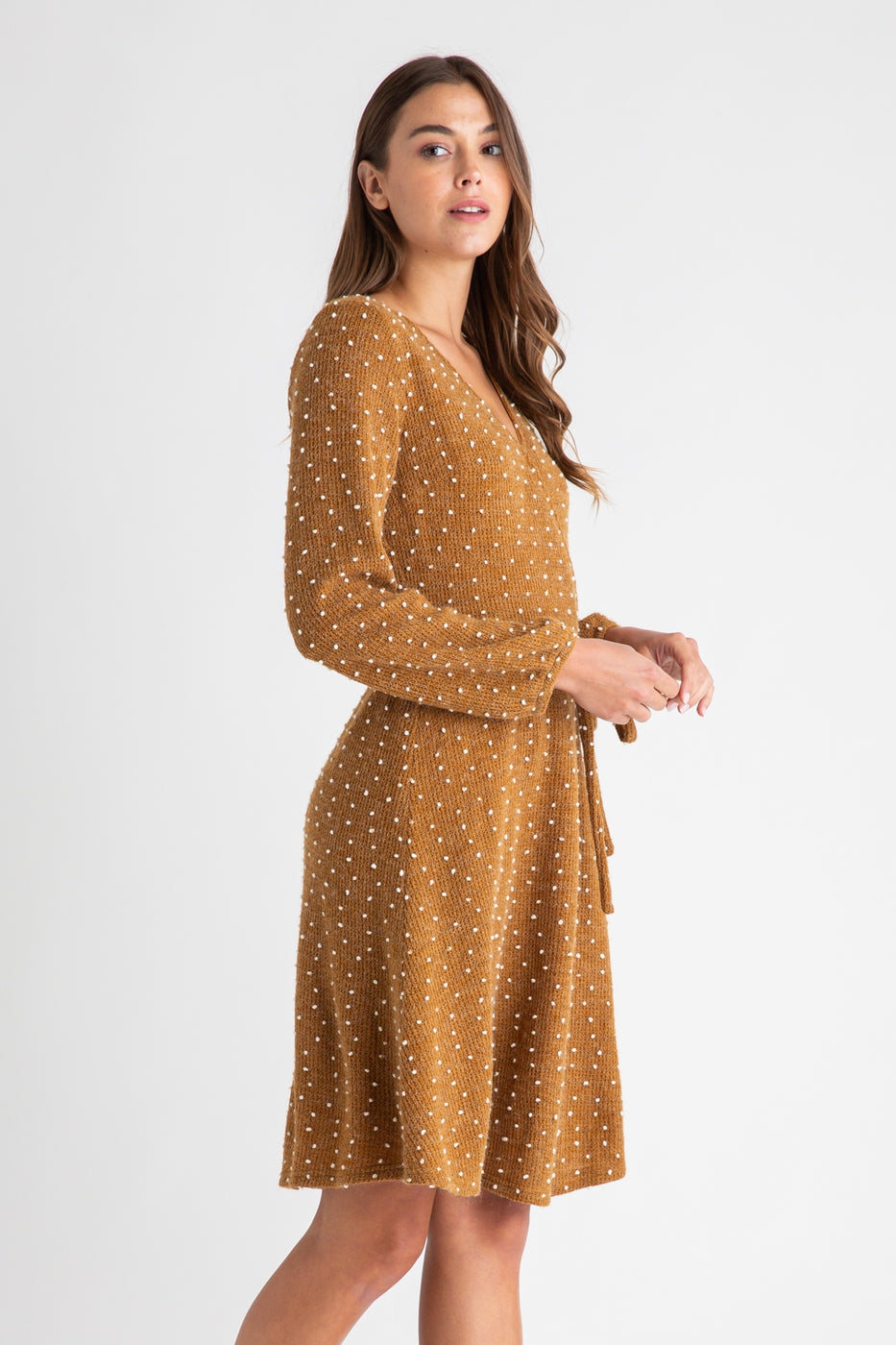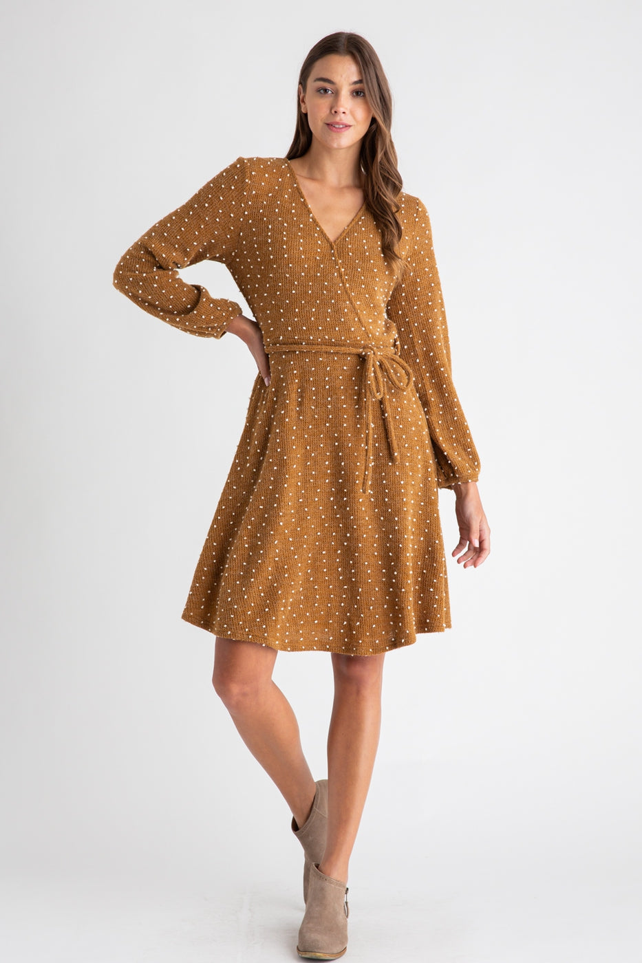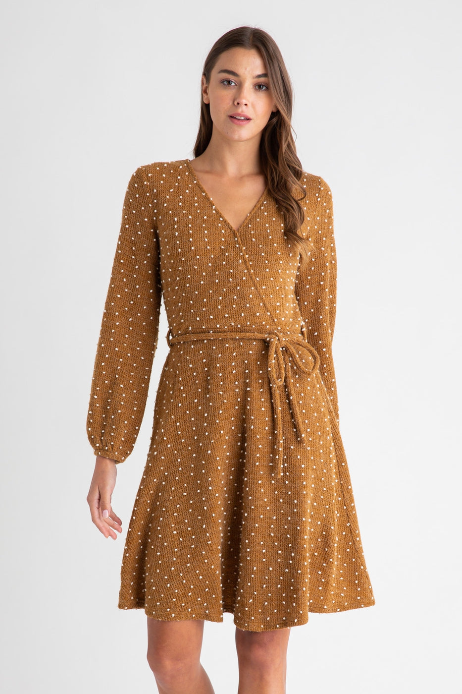 Dresses Dot Dress in Camel (LARGE) Details Dresses Dot Dress in Camel (LARGE) Unavailable $52.00 LARGE - $52.00 Size LARGE Select options This item is a recurring or deferred purchase. By continuing, I agree to the cancellation policy and authorize you to charge my payment method at the prices, frequency and dates listed on this page until my order is fulfilled or I cancel, if permitted. + V NECK+ SELF BELT TIE+ LONG SLEEVEMODEL IS 5`8" (32-24-34) WEARING A SMALLRead more + V NECK+ SELF BELT TIE+ LONG SLEEVEMODEL IS 5`8" (32-24-34) WEARING A SMALL Share