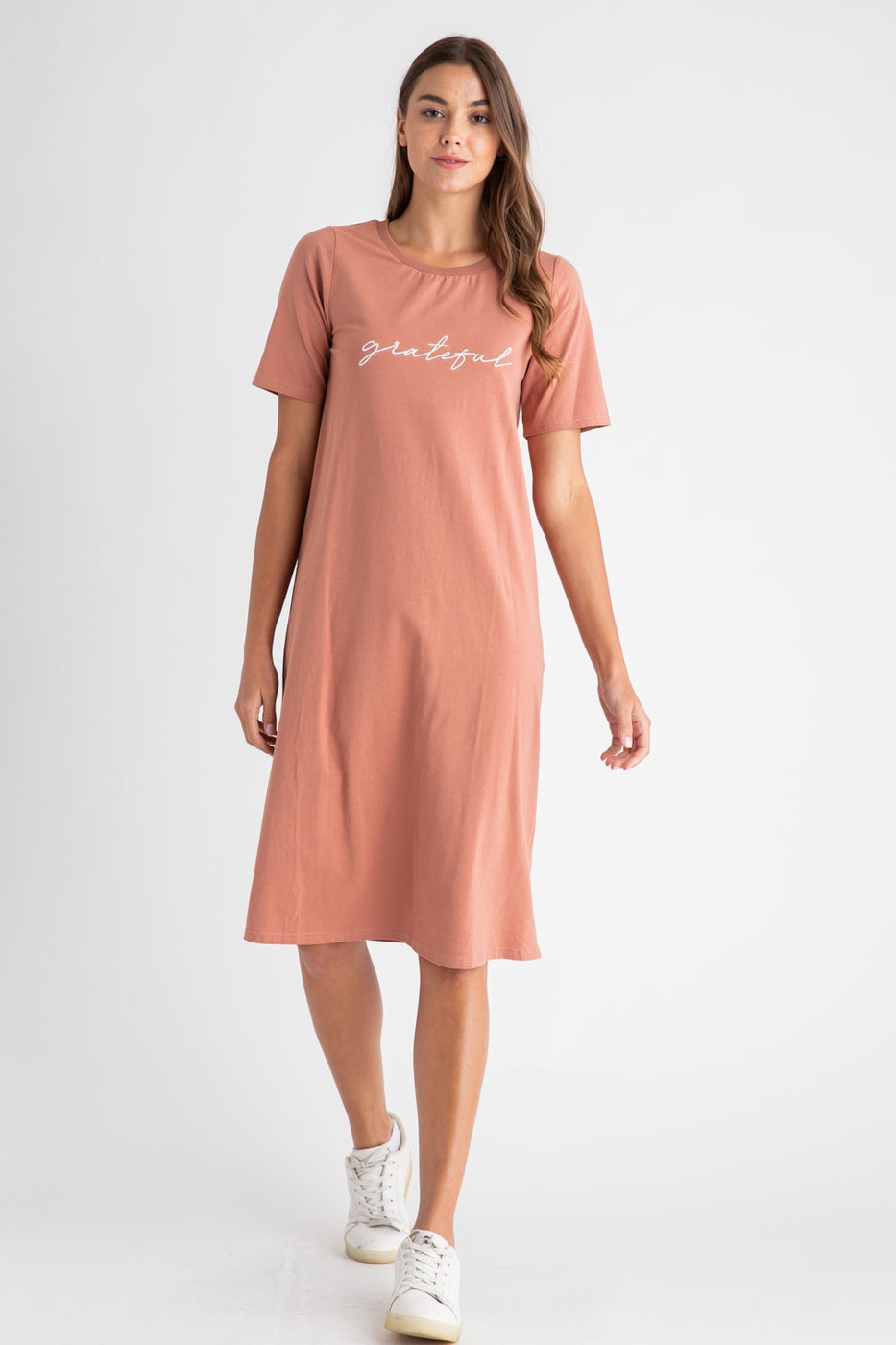 Dresses Grateful Tee Dress in Apricot (LARGE) Details Dresses Grateful Tee Dress in Apricot (LARGE) Unavailable $44.00 LARGE - $44.00 Size LARGE Select options This item is a recurring or deferred purchase. By continuing, I agree to the cancellation policy and authorize you to charge my payment method at the prices, frequency and dates listed on this page until my order is fulfilled or I cancel, if permitted. + T-SHIRT DRESS+ SHORT SLEEVE+ MIDI LENGTH MODEL IS WEARING A SMALL COTTON 95%Read more + T-SHIRT DRESS+ SHORT SLEEVE+ MIDI LENGTH MODEL IS WEARING A SMALL COTTON 95% Share