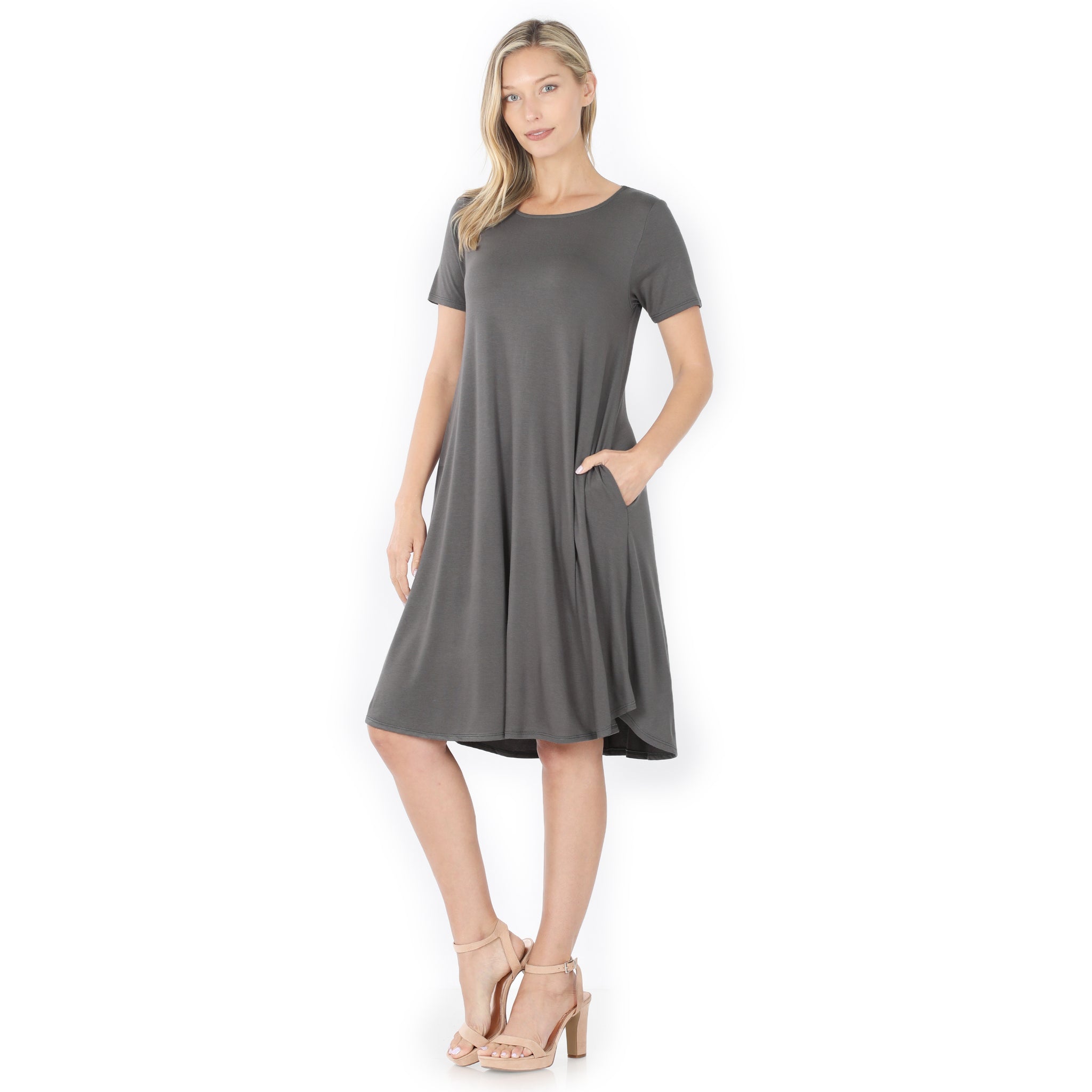 VISCOSE SHORT SLEEVE ROUND NECK KNEE LENGTH DRESS