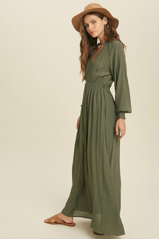 Kinsley Boho Maxi Dress in Olive (SMALL/MEDIUM) - $56.00