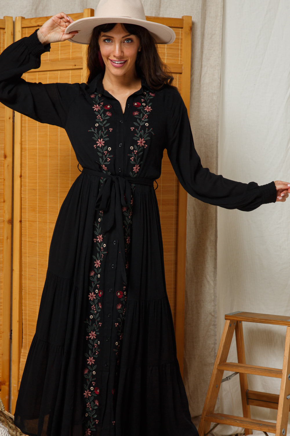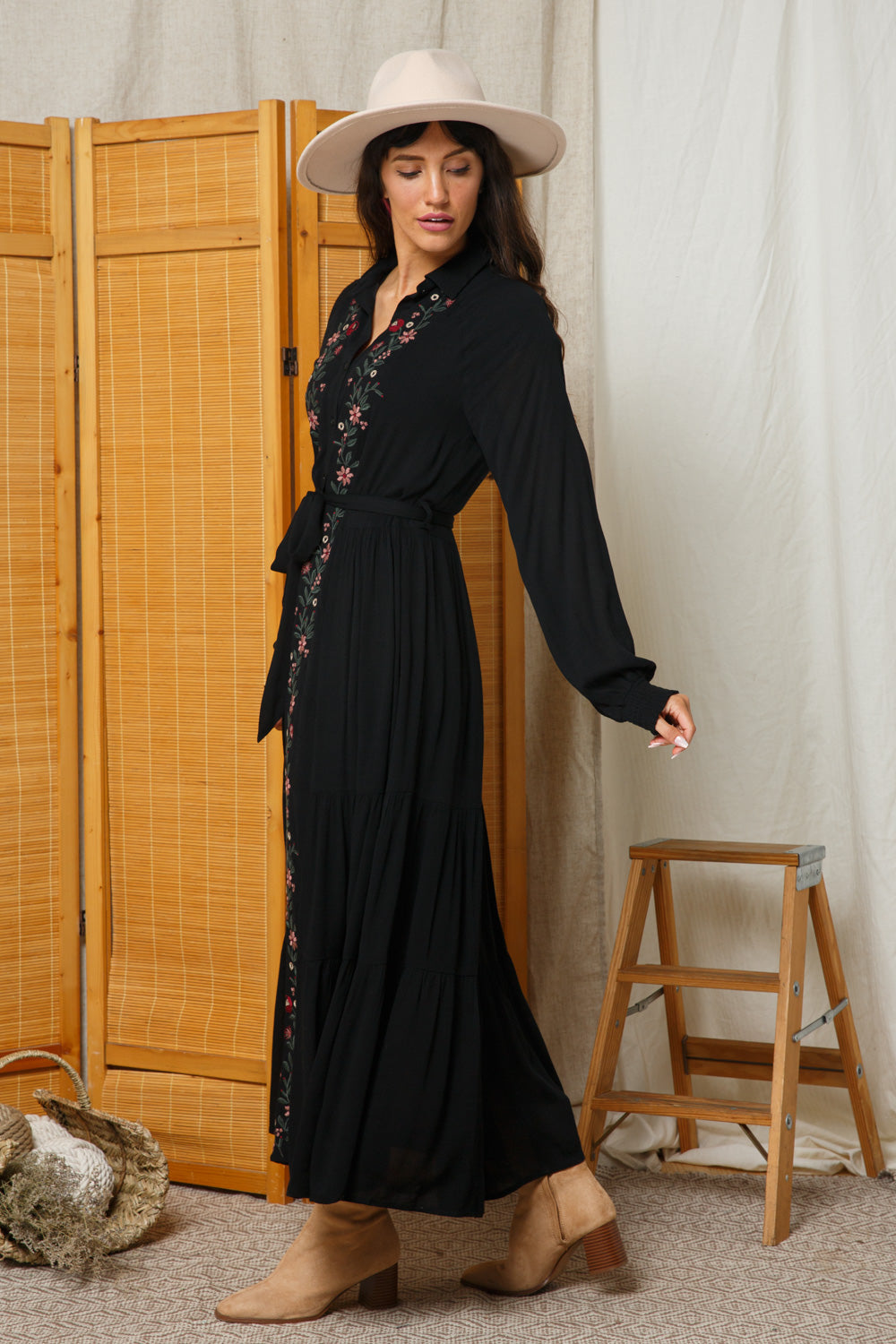 SMALL Adalynn Maxi Dress in Black (SMALL) Details SMALL Adalynn Maxi Dress in Black (SMALL) Unavailable $59.00 SMALL - $59.00 Size SMALL Select options This item is a recurring or deferred purchase. By continuing, I agree to the cancellation policy and authorize you to charge my payment method at the prices, frequency and dates listed on this page until my order is fulfilled or I cancel, if permitted. + EMBROIDERED TIERED MAXI DRESS + WAIST TIE + ROLL-UP LONG SLEEVES + FUNCTIONING BUTTONS MODEL IS WEARING A SMALLRead more + EMBROIDERED TIERED MAXI DRESS + WAIST TIE + ROLL-UP LONG SLEEVES + FUNCTIONING BUTTONS MODEL IS WEARING A SMALL Share