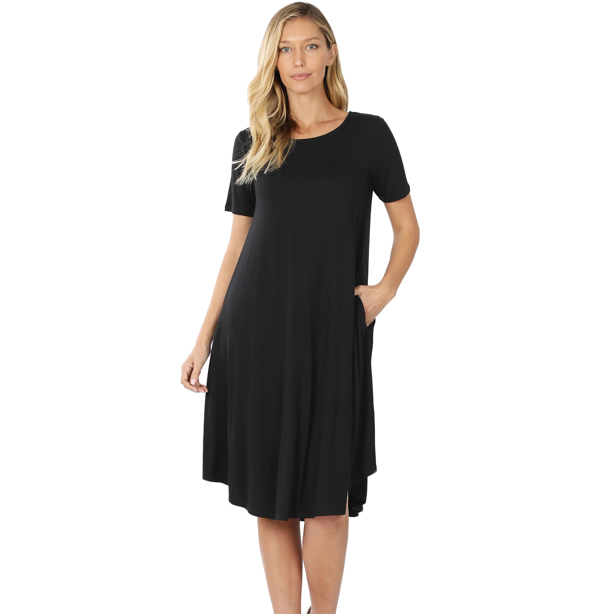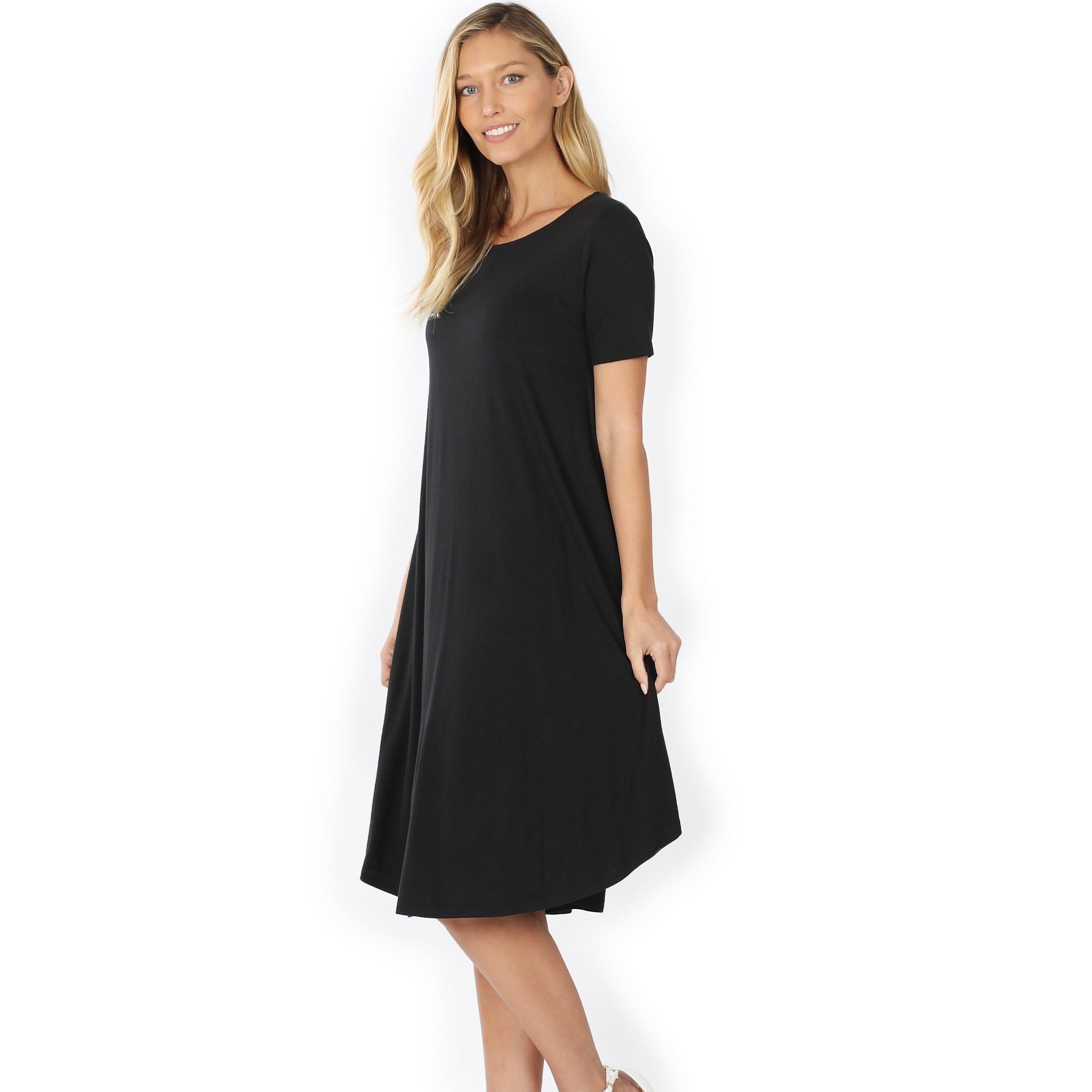 VISCOSE SHORT SLEEVE ROUND NECK KNEE LENGTH DRESS