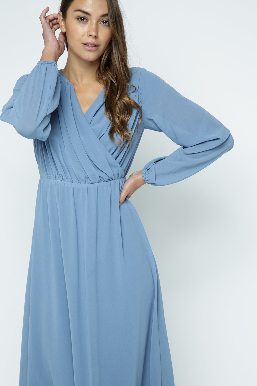 Ariana Long Sleeve Dress (MEDIUM) Details Ariana Long Sleeve Dress (MEDIUM) Unavailable $47.00 MEDIUM - $47.00 Size MEDIUM Select options This item is a recurring or deferred purchase. By continuing, I agree to the cancellation policy and authorize you to charge my payment method at the prices, frequency and dates listed on this page until my order is fulfilled or I cancel, if permitted. + SURPLICE V-NECK + ELASTIC HIGH WAIST + LONG SLEEVE MODEL IS 5'8" (32-24-34) WEARING A SMALLRead more + SURPLICE V-NECK + ELASTIC HIGH WAIST + LONG SLEEVE MODEL IS 5'8" (32-24-34) WEARING A SMALL Share
